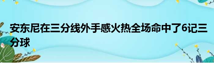 在比赛中,安东尼在三分线外手感火热,全场命中了6记三分球,特别是当双方比分胶着的时候,安东尼总是能够用三分球打开局面。