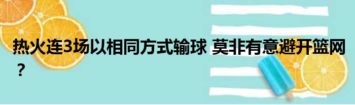 热火连3场以相同方式输球 莫非有意避开篮网?