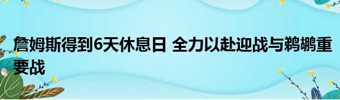 詹姆斯得到6天休息日 全力以赴迎战与鹈鹕重要战