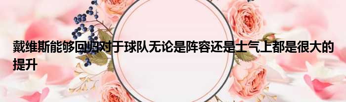 戴维斯能够回归对于球队无论是阵容还是士气上都是很大的提升